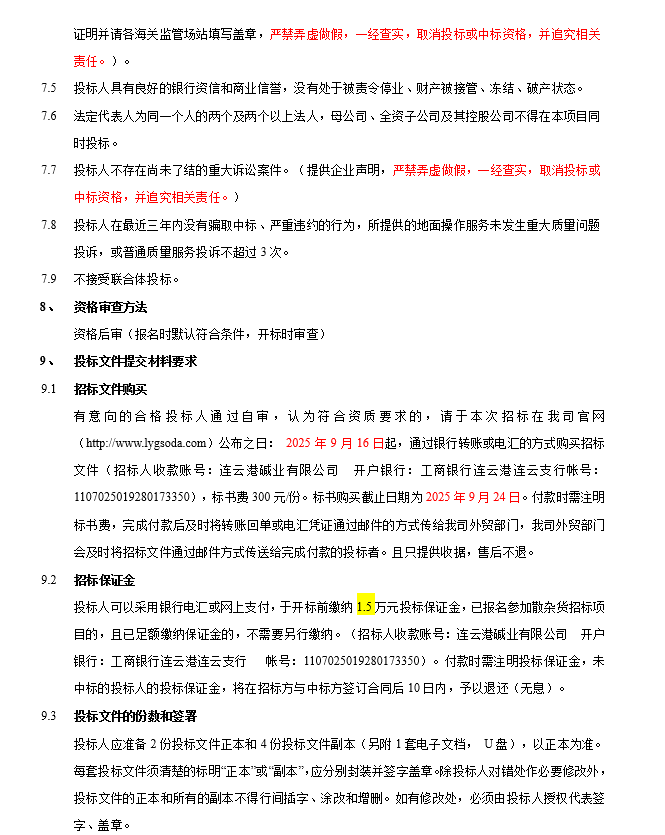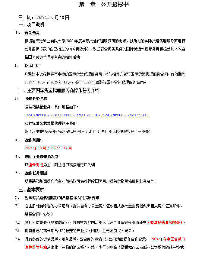 连云港碱业有限公司集装箱国际货运代理服务商项目招标公告