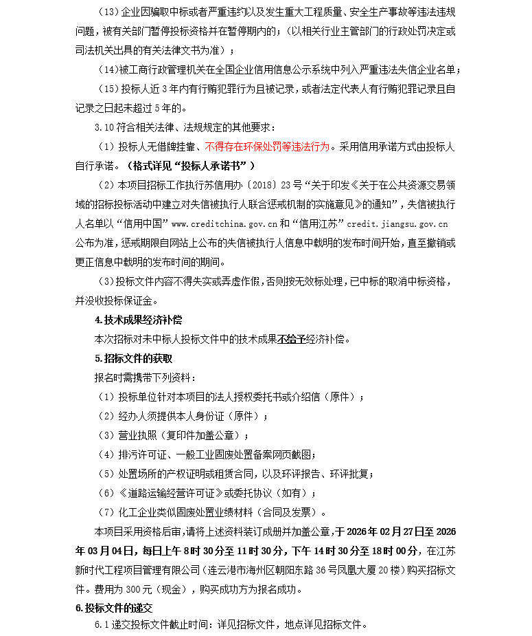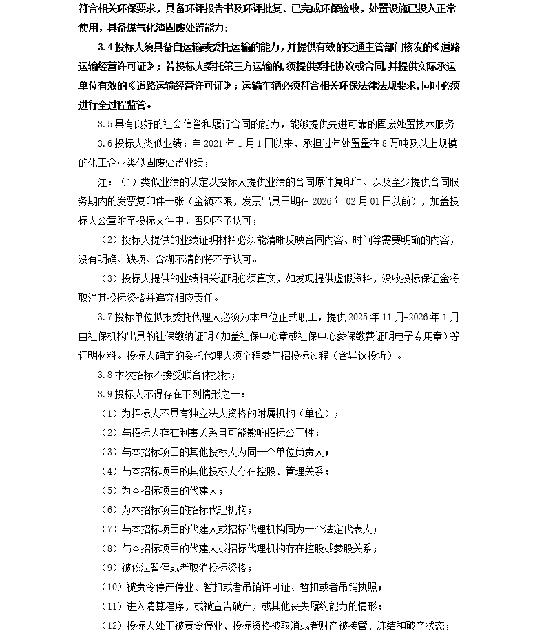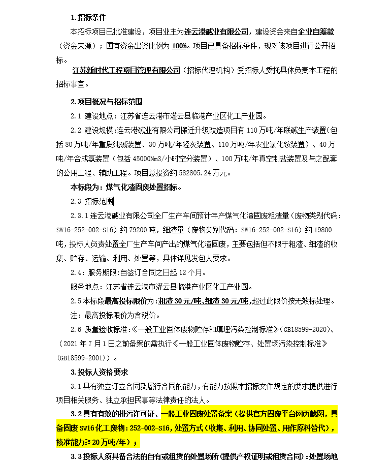 连云港碱业有限公司煤气化渣固废处置二次招标公告